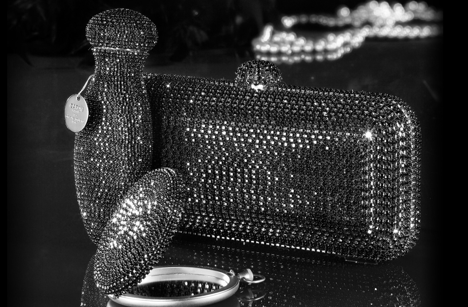 La haute parfumerie, les parfums Caron offrent à leurs flacons vedettes, un précieux habit sur mesure. créés et réalises en exclusivité par les talentueux créateurs de «on aura tout vu» le flacon traditionnel sous leurs mains expertes se transforme en un bijou digne des cours royales. paré de ses milles facettes en cristal le flacon bijou devient l’objet de toutes les convoitises. véritable écrin pour parfum rare, fiole irrésistible pour femme souveraine! une vision moderne, une prouesse magistrale dans la réalisation, une création luxueuse riche en émotions et sensations. flagrants désirs, ou signe extérieur de richesse?