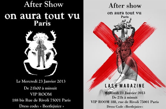 L’invitation de l’after show on aura tout vu & Lash Magazine