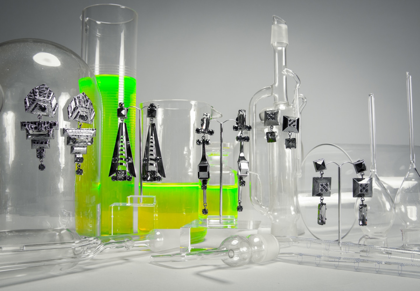 Les cristaux, qui ornent ces trésors d’une planète inconnue, se jouent de nuances Graphite, Silver Night, Black Diamond et Jet.