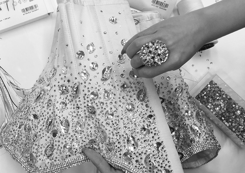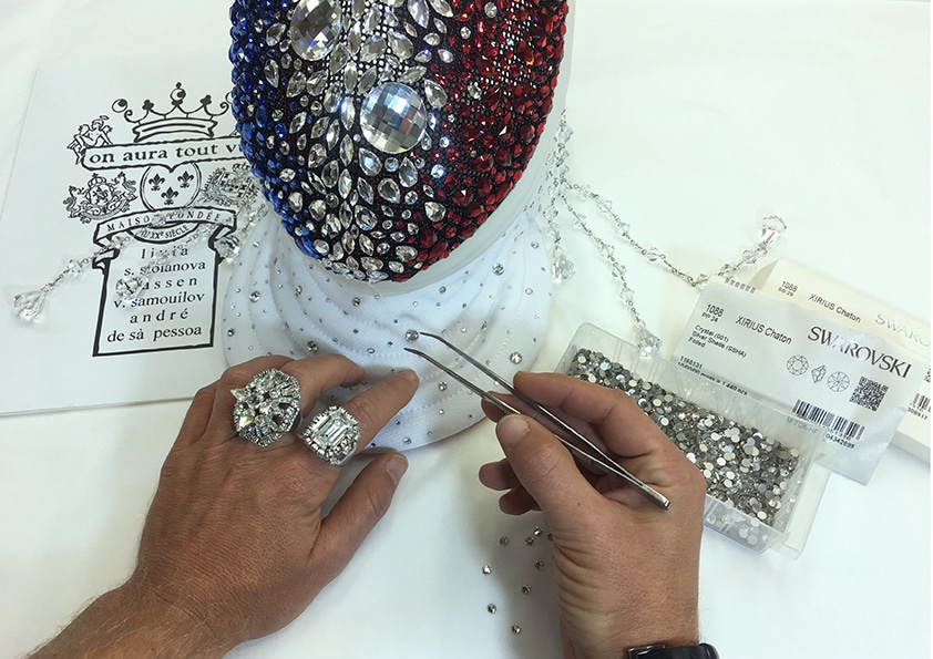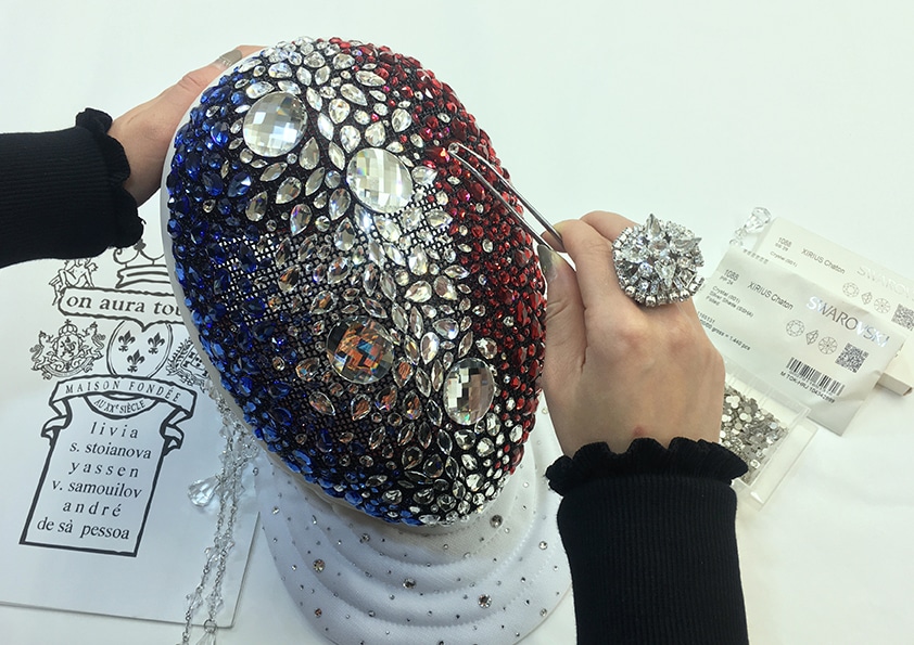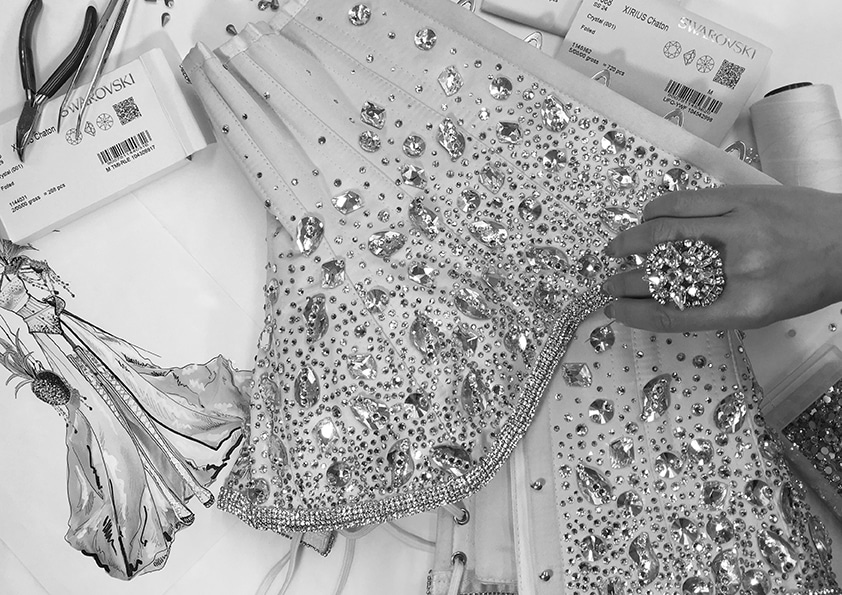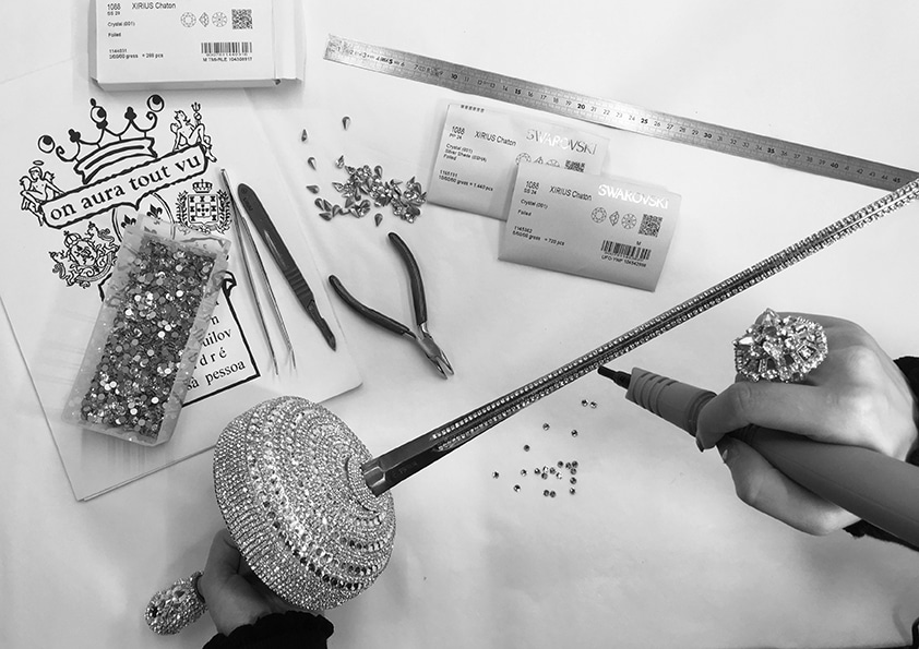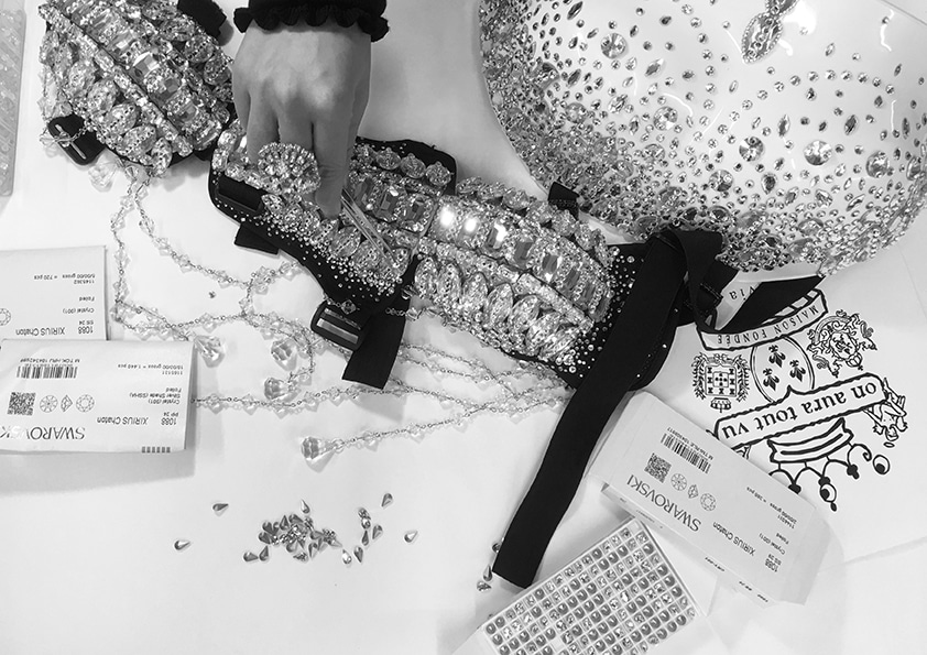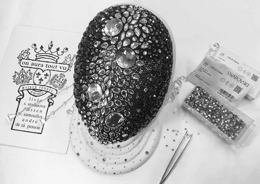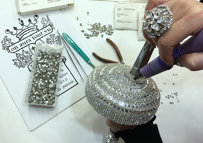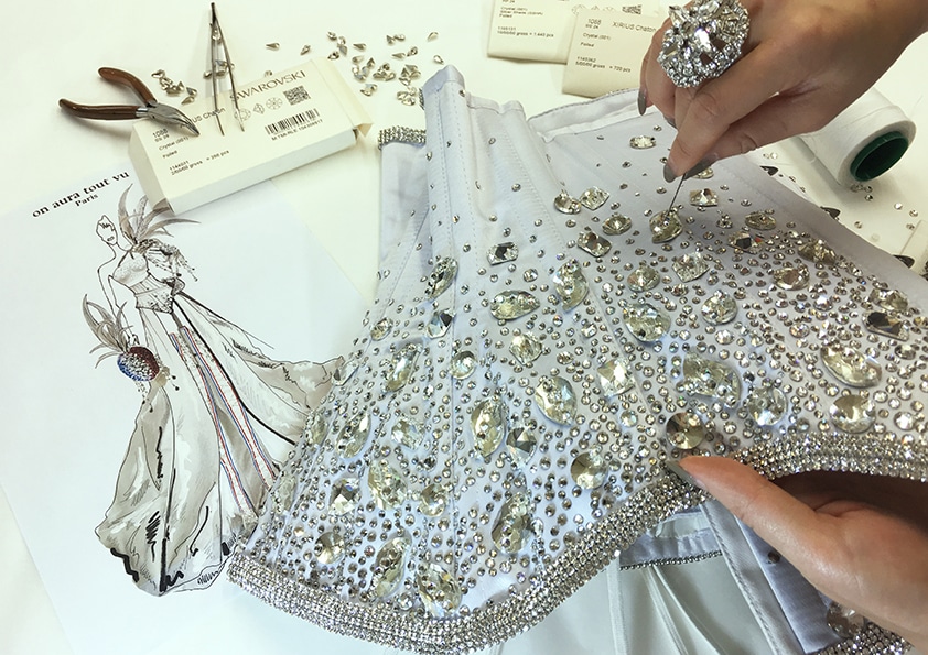 La réalisation de cet ensemble nécessite un mois de travail et plus de 2000 cristaux ont été utilisés en partenariat avec la maison Swarovski.