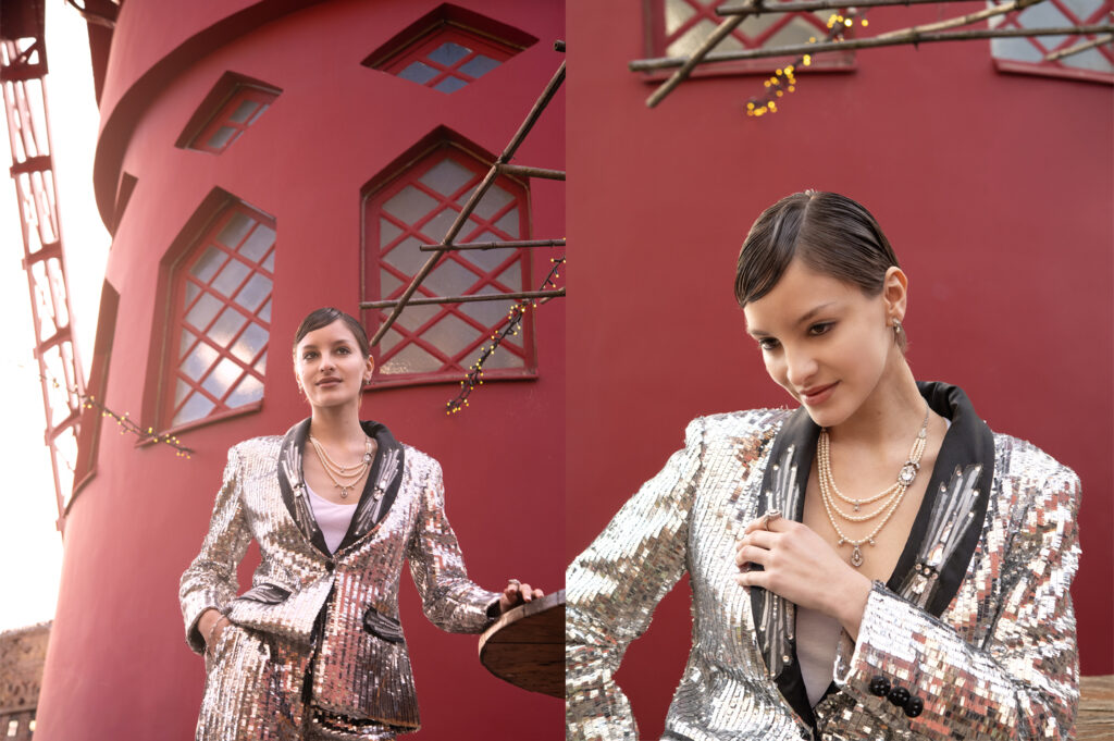 Pensée comme une garde-robe joaillière, MUSE – Moulin Rouge® by On Aura Tout Vu se compose de pièces raffinées mêlant perles nacrées, cristaux facettés et motifs Art déco, signatures d’un luxe parisien exigeant et identifiable.